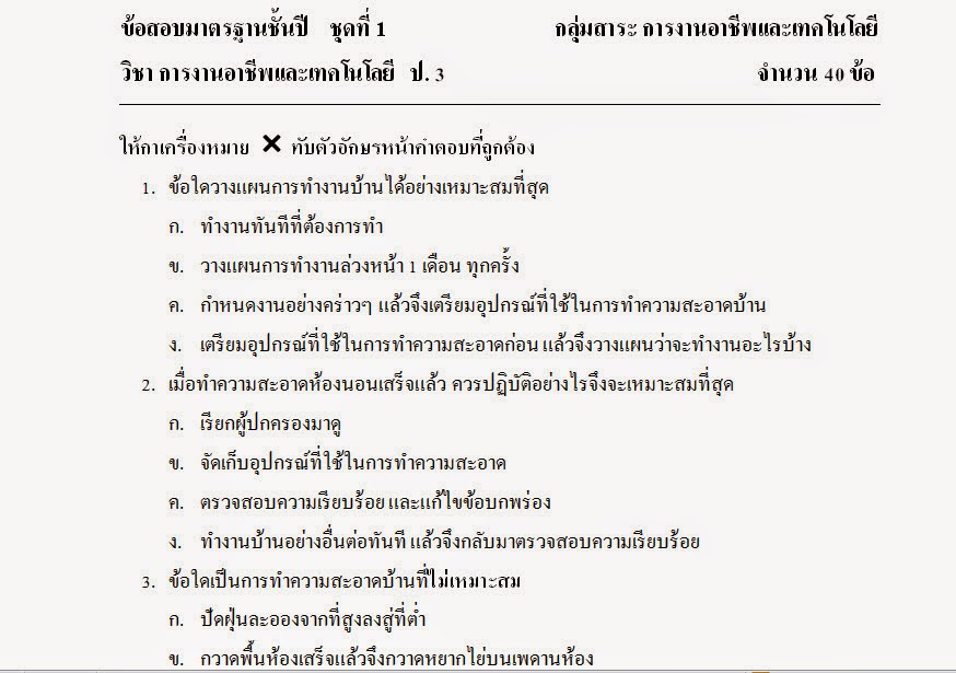 โจทย์ข้อสอบ พร้อมเฉลย มาตรฐานชั้น ป.3