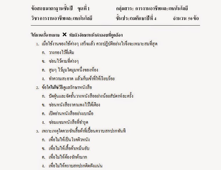 โจทย์ข้อสอบ พร้อมเฉลย มาตรฐานชั้น ป.4