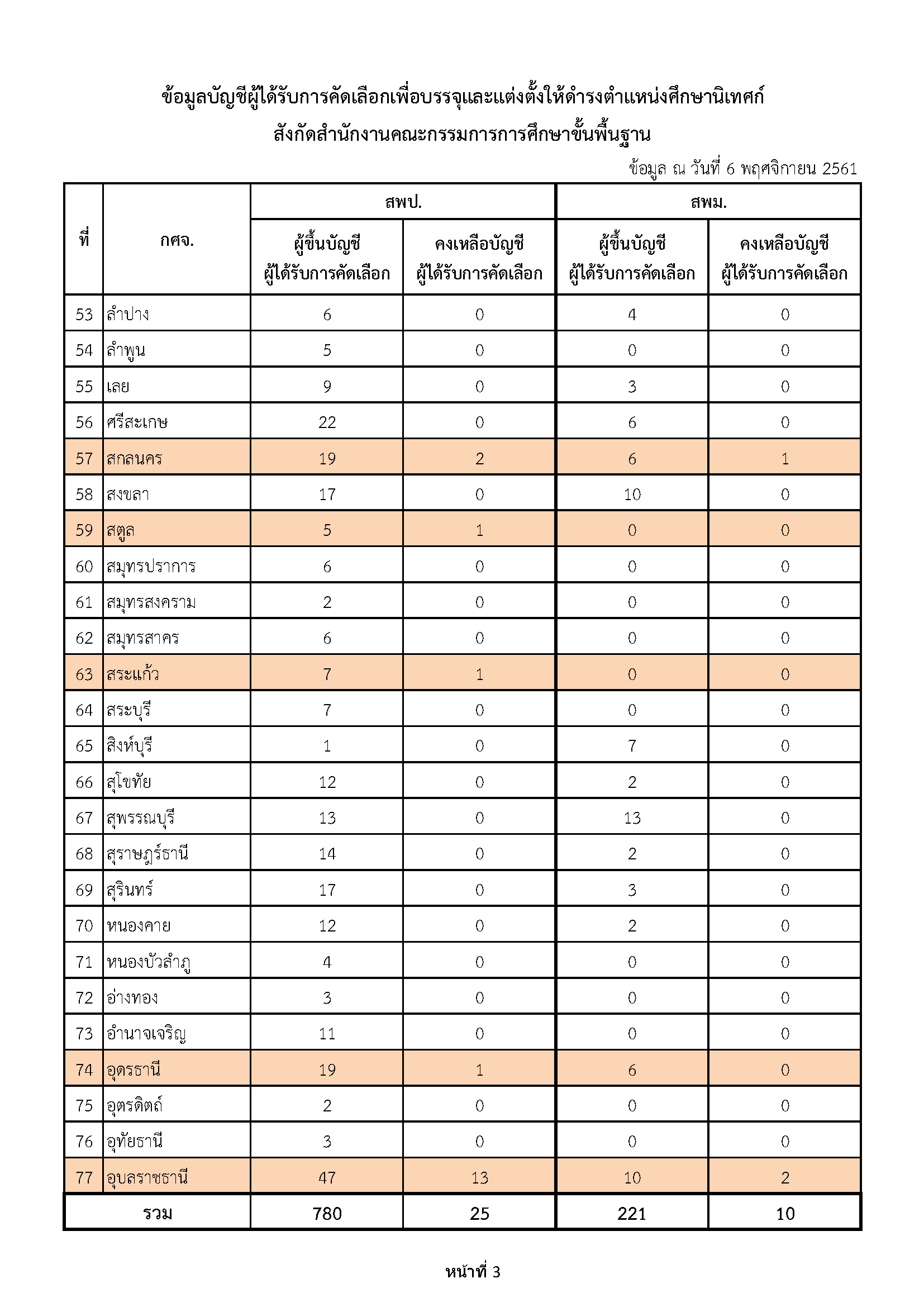 ข้อมูลบัญชีผู้ได้รับการคัดเลือกเพื่อบรรจุและแต่งตั้งให้ดำรงตำแหน่งศึกษานิเทศก์ สังกัด สพฐ. ปี พ.ศ. 2561